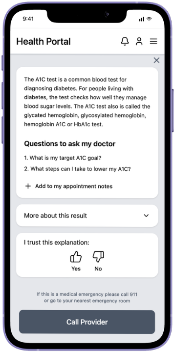 An AI-powered lab result translator that improves patient comprehension, builds calibrated trust through transparency, and supports real-world decision-making without replacing clinicians.