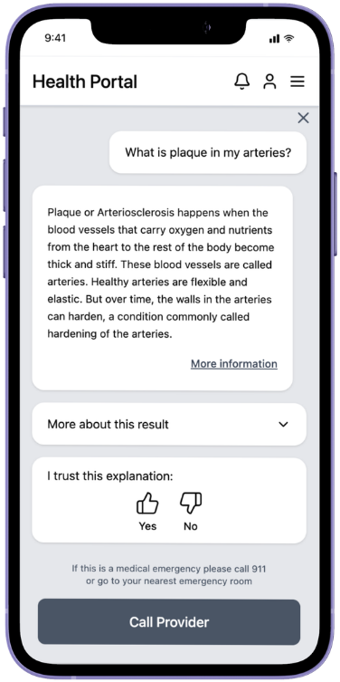 Because healthcare is high-stakes, transparency and safety were foundational to the interface.
